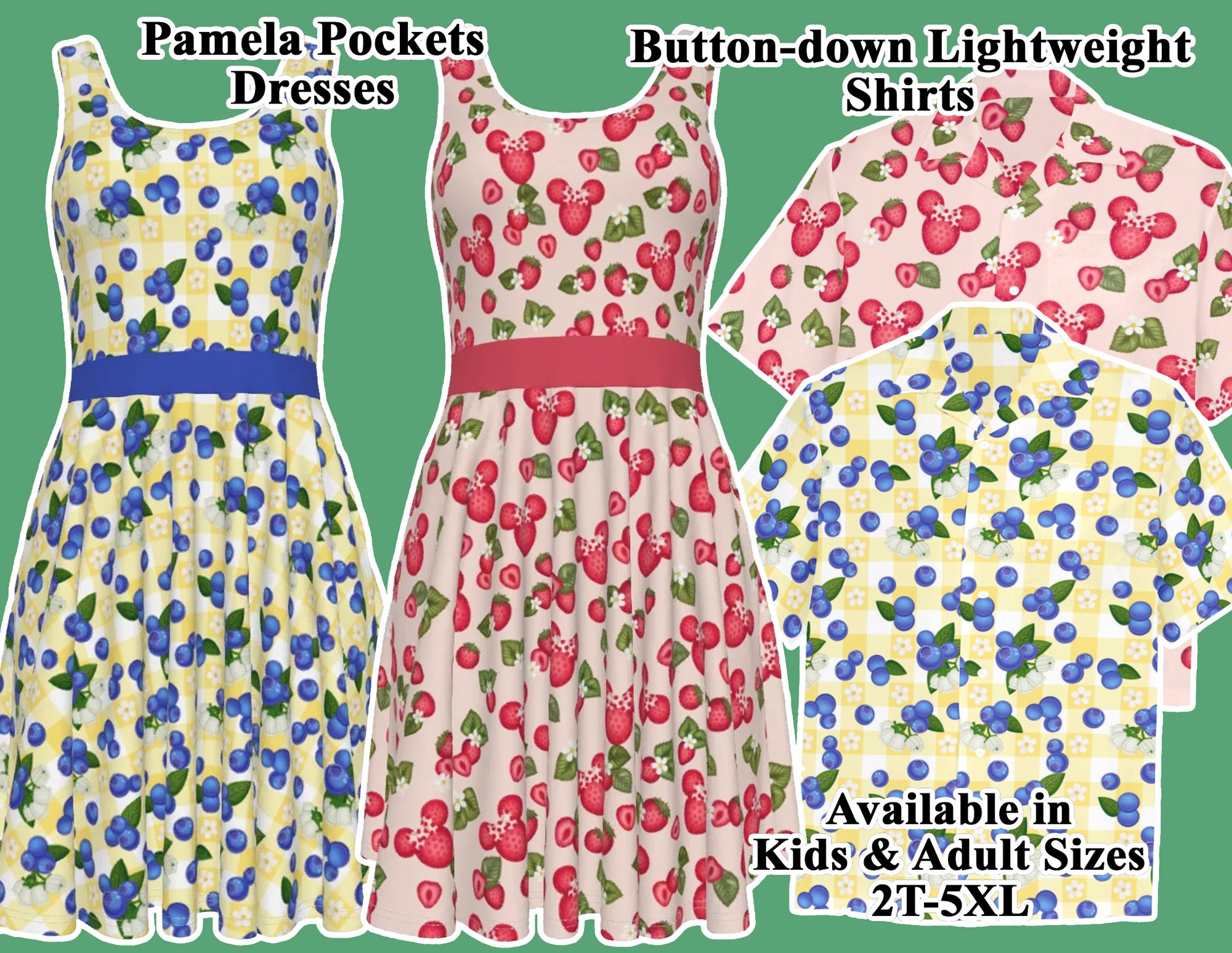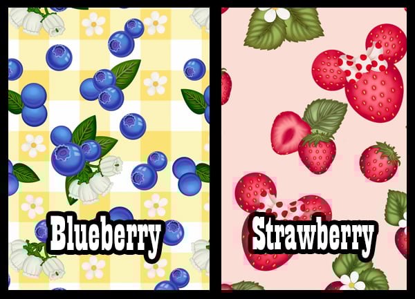 Strawberries or Blueberries, what's your favorite? Why not get BOTH? Blueberries is on a sunny yellow plaid background, while strawberries are on a creamy background the goes perfectly with the ruby juicy strawberries! And hidden Mickeys hide in both designs!